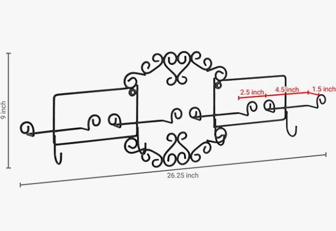 Cup and Saucer Hanger - Horizontal Scrolls - Four Place