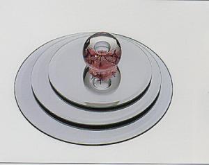 Popular with event planners, these large round beveled mirrors are perfect for party displays. They work well to highlight a table centerpiece or the items on a buffet table. Imagine a floral arrangement surrounded by candles reflected in one of these mirrors on your party table! Ever so versatile, these large round mirrors also work well for accenting your home displays, like a prized perfume bottle collection, or grouping of decorative boxes. As with all of our large mirrors, these feature a half inch bevel and are 5mm thick, with rubber feet on the bottom to protect your furniture surfaces. Available in 14", 16", 18" and 20" in diameter.